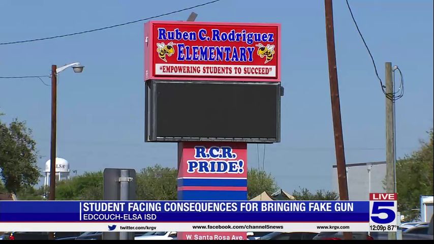 An elementary school at Edcouch-Elsa ISD will impose disciplinary measures after a student brought a fake gun to school Wednesday morning, according to the district's superintendent Dr. Greg Rodriguez.