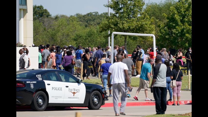 After news of the shooting spread, parents gathered at the Mansfield Independent School District Center for the Performing Arts about 5 miles (8 kilometers) from the high school to be reunified with their kids, who were bused over. Among them was Justin Rockhold, whose ninth-grade son had texted him to let him know he was OK.
