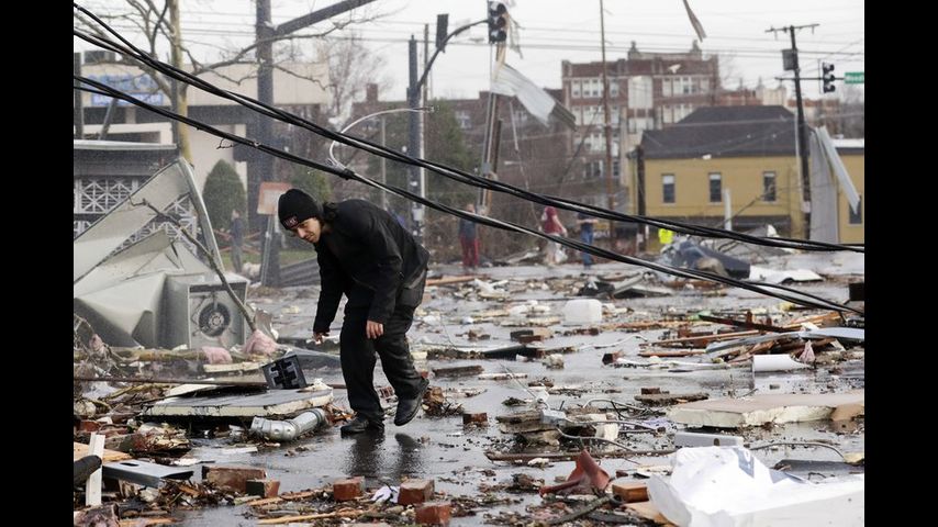 Uno de los tornados causó daños estragos en una franja de unos 16 kilómetros (10 millas) de distancia del centro de Nashville, destruyendo casas, negocios y la torre y las ventanas de una iglesia histórica. Otro tornado arrancó casas de sus cimientos a lo largo de un sendero de 3,2 kilómetros (2 millas) en el condado Putnam.