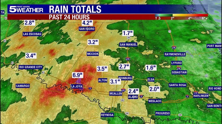 Hidalgo County reported the highest accumulated rainfall totals within the last 24 hours so far and the most power outage reports.