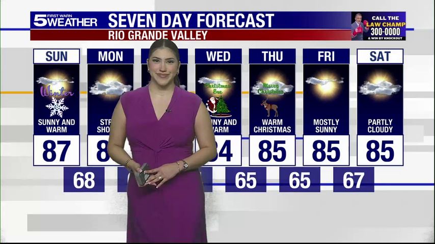 Sunday, Dec. 21, 2025: Sunny and warm with highs in the 80s