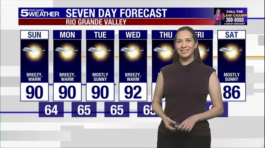 Sunday, March 22, 2026: Breezy and warm, temps in the 90s