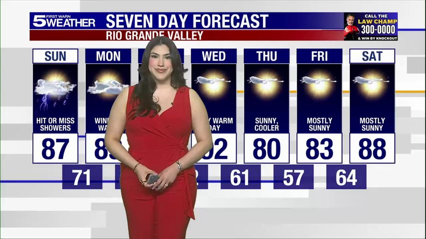 Sunday, March 8, 2026: Hit or miss showers, temps in the 80s