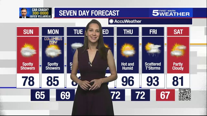 Sunday, October 8, 2023: Spotty showers, temps in the 70s