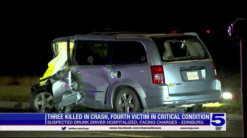 A 46-year-old driver remains hospitalized in critical condition after crashing into a minivan and killing three people and hospitalizing a 10-year-old girl, according to the Edinburg Police Department.