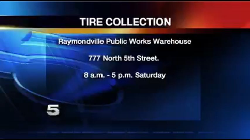 The tire collection event will take place Saturday from 8 a.m. to 5 p.m. at the City of Raymondville Public Works Warehouse located at 777 North 5th Street.