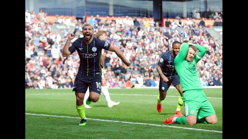 City scraped past Burnley 1-0 thanks to a scruffy strike by Sergio Aguero that needed the confirmation of goal-line technology.