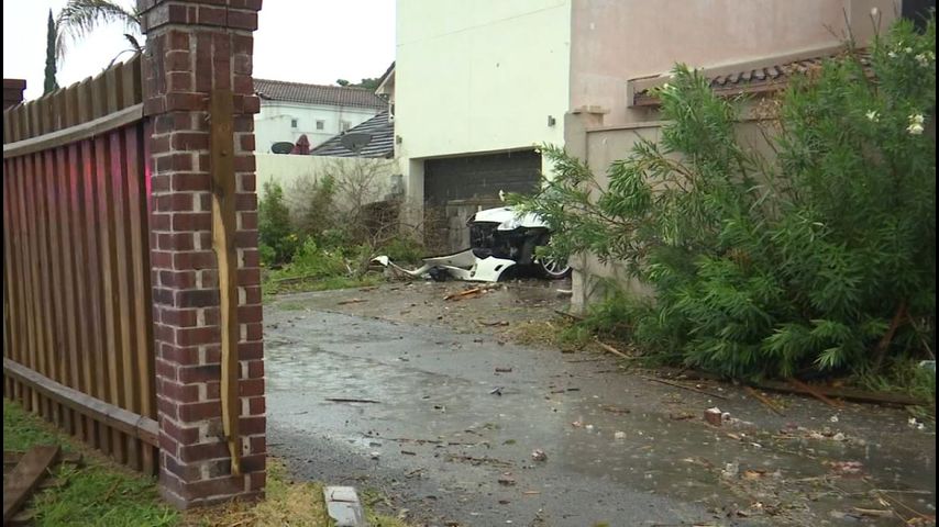 The debris from the crash caused damage to two other vehicles and the driver also hit a brick fence to a house, Flores said.
