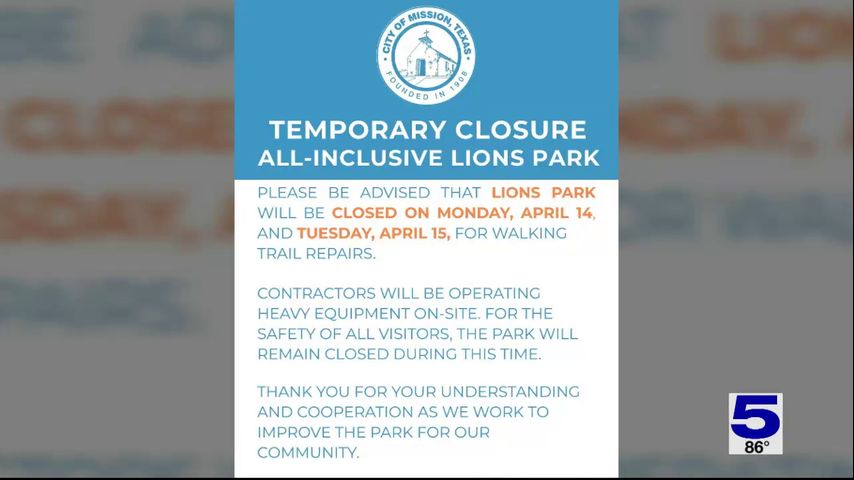 The park, located at 1500 E. Kika De La Garza Loop in mission, will be closed on Monday, April 14 and Tuesday, April 15, according to a social media post.