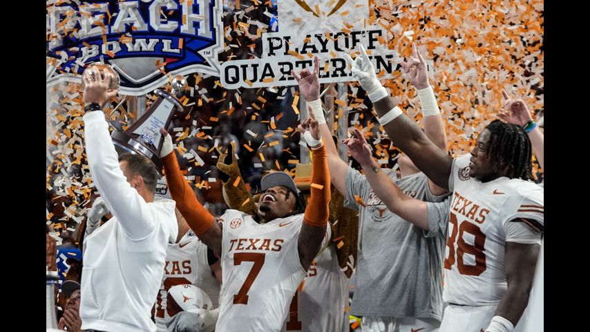 ATLANTA (AP) — Texas avoided the first big upset of the College Football Playoff, hitting a fourth-and-long touchdown pass to keep the game going and beating Cam Skattebo and Arizona State 39-31 in double overtime when an interception by Andrew Mukuba finally ended a Peach Bowl quarterfinal classic Wednesday.