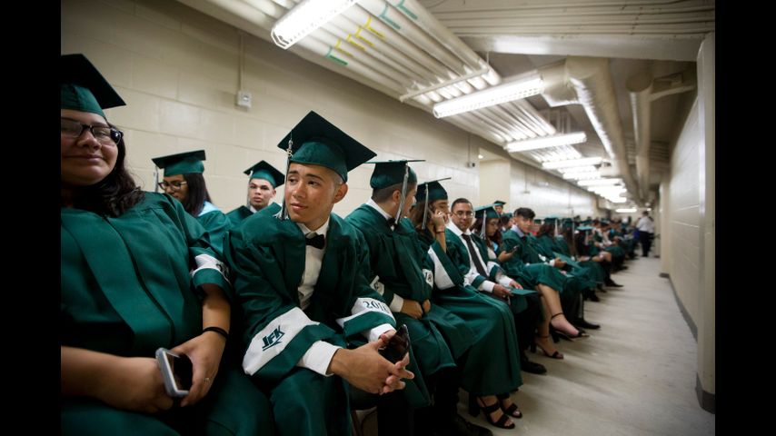 A jam-packed auditorium or gymnasium. Hugs from fellow graduates. Rows of family members and friends whooping and standing to watch their cap-and-gowned seniors cross the stage.