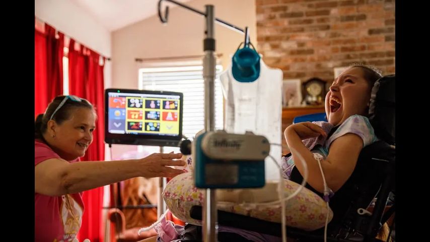 Laurie Sharp is the main caregiver for her 20-year-old daughter, Logan, who uses a wheelchair and a feeding tube. Logan has multiple respiratory illnesses that require her to do breathing treatments throughout the day. Sharp, 62, quit her job as a truck driver of 37 years to provide full-time care for her daughter.
