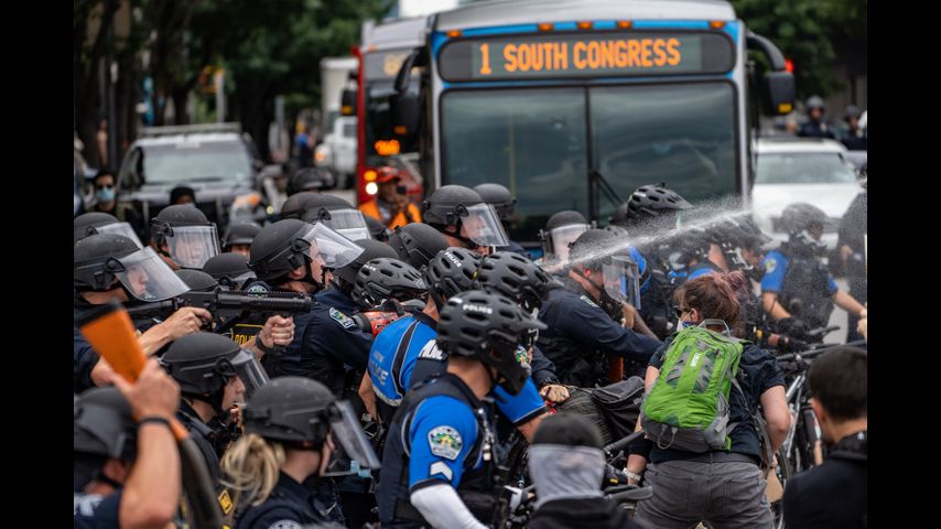 In Austin, police officers repeatedly fired “less-lethal” ammunition, like bean bag rounds, and tear gas canisters into crowds of protesters. The shots critically injured at least one man, who police say was not their intended target, and sent more to the hospital.
