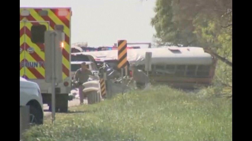 Officials said the bus rolled over on the highway in the rural outskirts of Austin, where a heavy presence of emergency vehicles shut down traffic for hours. The roof of the bus was crumpled, and much of another vehicle nearby was pulverized. Personal items were strewn across the road.