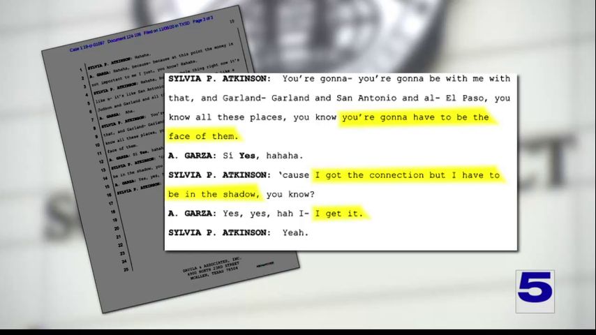 Prosecutors said Atkinson knew the deal was unethical. Atkinson told Garza that she would need to be the face of the company, according to transcripts of recorded phone conversations.