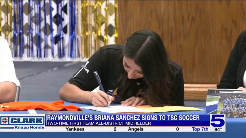 Raymondville's Briana Sanchez signed her letter of intent to join the Texas Southmost Scorpions women's soccer program on Tuesday afternoon.