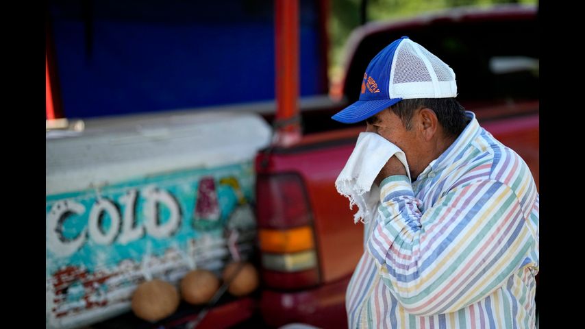 Among the heat's casualties was a man who died late Sunday in Shreveport, Louisiana, the second heat-related death in the state in an unusually warm June. The 49-year-old from neighboring Bossier City had been found lying on a sidewalk in Shreveport, where Sunday's temperature hit 97 degrees (36 degrees Celsius) — 10 degrees Fahrenheit higher than the average for the date.