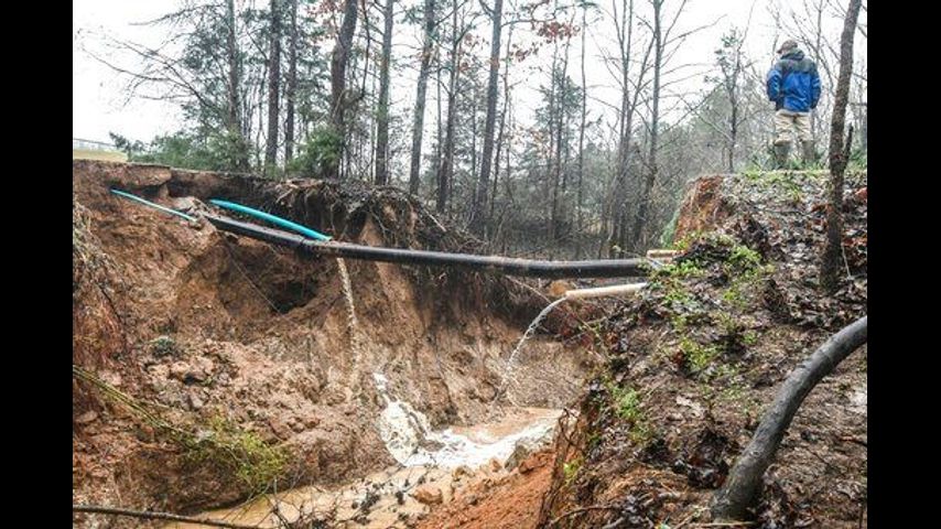 In Bruce, Mississippi, rivers broke flood stage and flash floods poured into homes and businesses. News outlets report that a local state of emergency was declared by officials in Grenada, Mississippi, after dozens of streets and homes flooded. A six-mile (nine-kilometer) stretch of the Natchez Trace Parkway was closed in Mississippi after water covered part of the road.