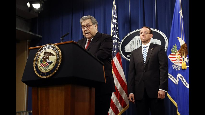 Barr says Mueller did not reach a "prosecutorial judgment" and that he and Deputy Attorney General Rod Rosenstein concluded the evidence was not sufficient to establish the president committed an offense.