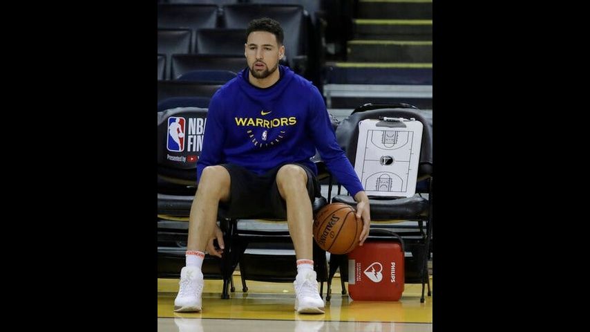 Klay Thompson is going to warm up before Game 3 of the NBA Finals and his status remains uncertain.