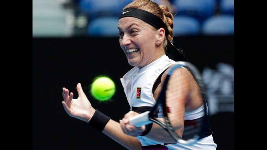 Two-time Wimbledon champion Petra Kvitova is the first player into the Australian Open quarterfinals after beating 17-year-old American Amanda Anisimova 6-2, 6-1 to open play Sunday at Rod Laver Arena.