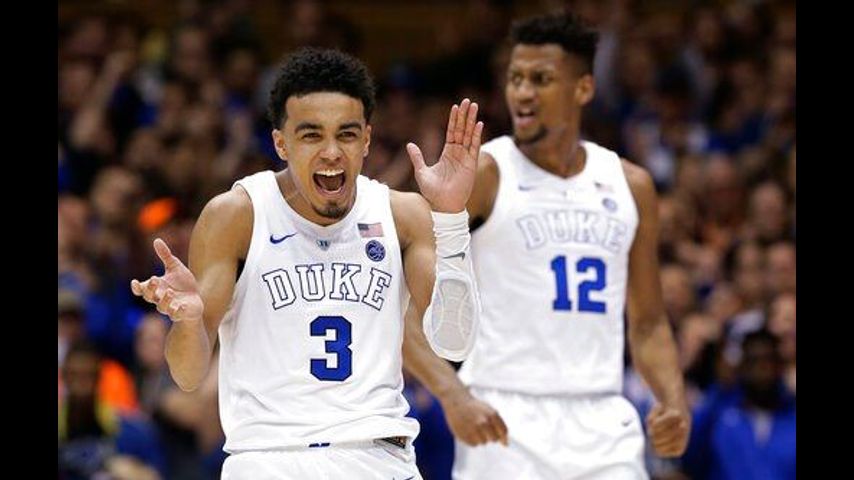 As the deadline approached for finalizing those predictions in office pools and just-for-fun family contests, 36.6 percent of entrants on ESPN's online platform picked Duke to win it all. Next was rival North Carolina at 15.8 percent, followed by the other No. 1 seeds Gonzaga (8.9 percent) and Virginia (8.3 percent).