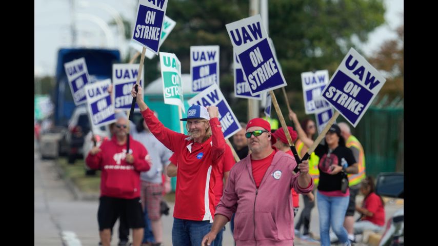 So far the strike is limited to about 13,000 workers at three factories — one each at GM, Ford and Stellantis. GM warned, however, that 2,000 UAW-represented workers at an assembly plant in Kansas City are "expected to be idled as soon as early this week" because of a shortage of supplies from a GM plant near St. Louis, where workers walked off the job Friday.