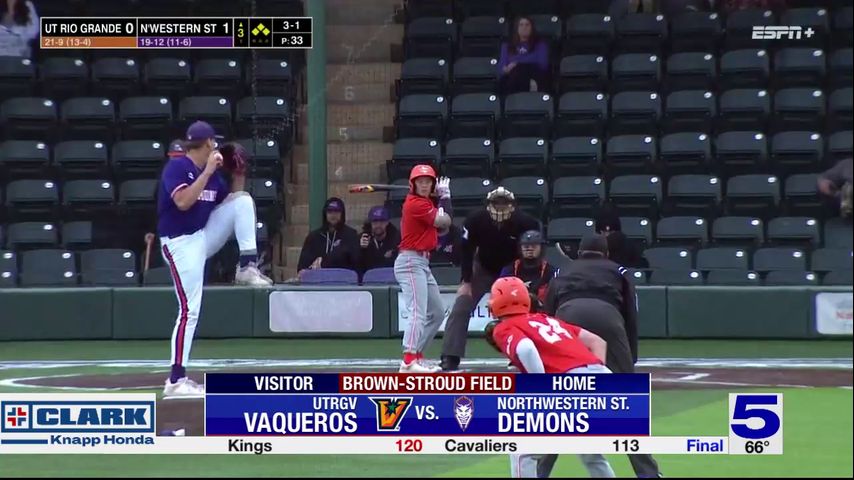 The Vaqueros dropped game to of the doubleheader against Northwestern State on Sunday. The Demons rallied past the Vaqueros with a 5 run 8th inning to take the win 8-5.