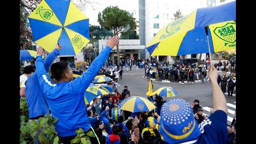 MADRID (AP) - Hundreds of Boca Juniors fans gathered outside their team's hotel in Madrid on Saturday, chanting "It doesn't matter where you play, we will always follow you."