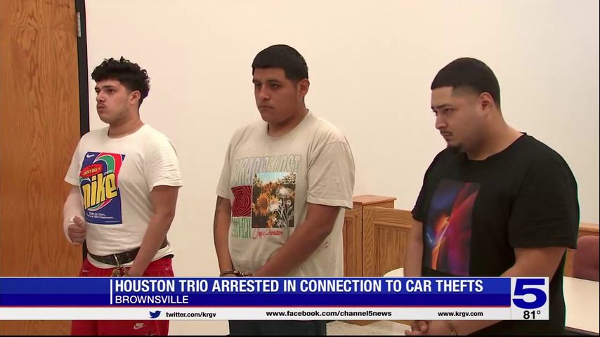 Three Houston men accused in a string of car thefts that occurred throughout the Valley were arraigned Wednesday morning in Brownsville.