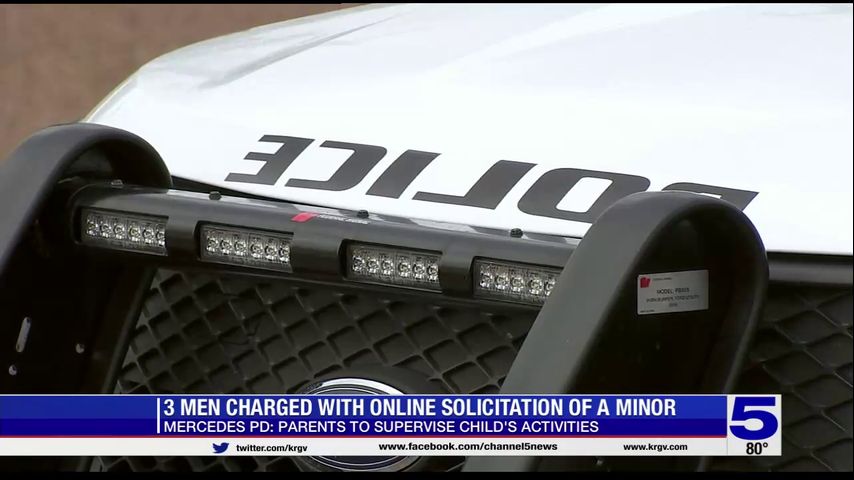 The Mercedes Police Department is urging parents to be extra vigilant about who their kids are interacting with online following the arrest of three men on charges of online solicitation and prostitution of a minor.