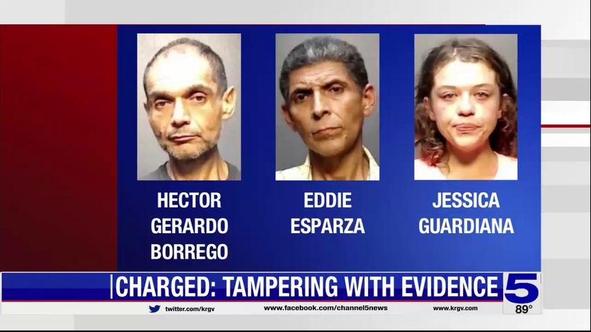 Hector Borrego, Eddie Esparza and Jessica Guardiana were arrested on Wednesday and all three have been charged with tampering with physical evidence and engaging in organized criminal activity.