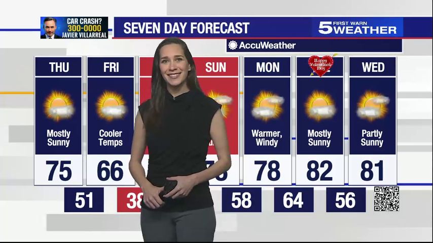 Thurs. February 9, 2023: Mostly sunny, temperatures in the 70s
