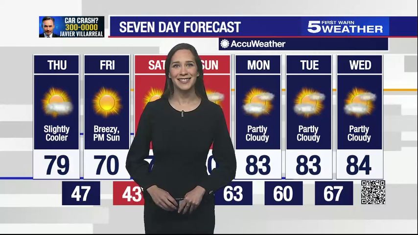 Thurs. Jan. 12, 2023: Slightly cooler, temperatures in the high 70s