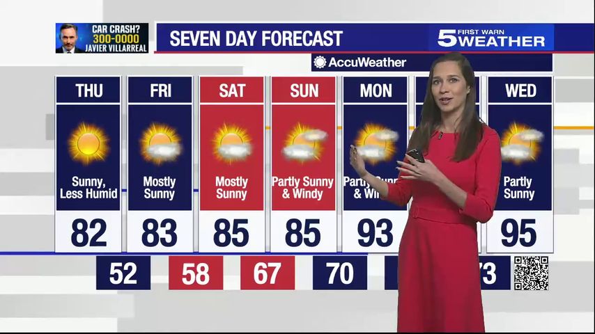 Thursday, April 7, 2022: Sunny, less humid, with temperatures in the 80s