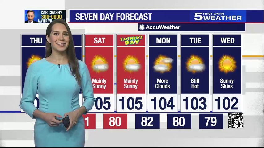 Thursday, June 15, 2023: Hot and humid with a high of 104° Fahrenheit