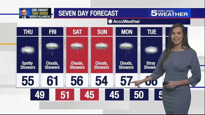 Thursday Nov. 17, 2022: Spotty shower, high 50s