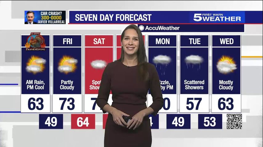Thursday, Nov. 23, 2023: Cool temperatures with rainy morning