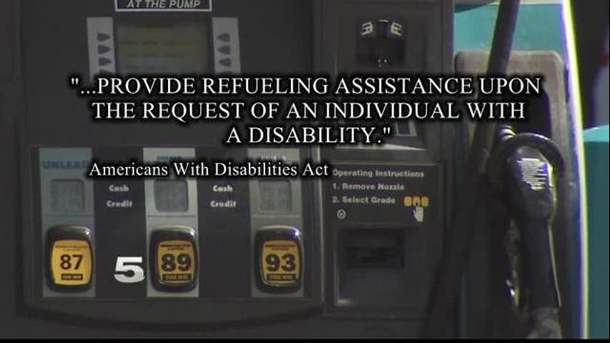 Bajo el acto de Americanos con Discapacidades, las gasolineras de auto-servicio que cuentan con más de un empleado presente son requeridas asistir a personas discapacitadas.