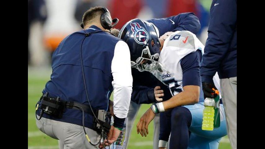 NASHVILLE, Tenn. (AP) - Marcus Mariota is hurt again, not that Tennessee coach Mike Vrabel is saying just yet just how bad his quarterback is injured.