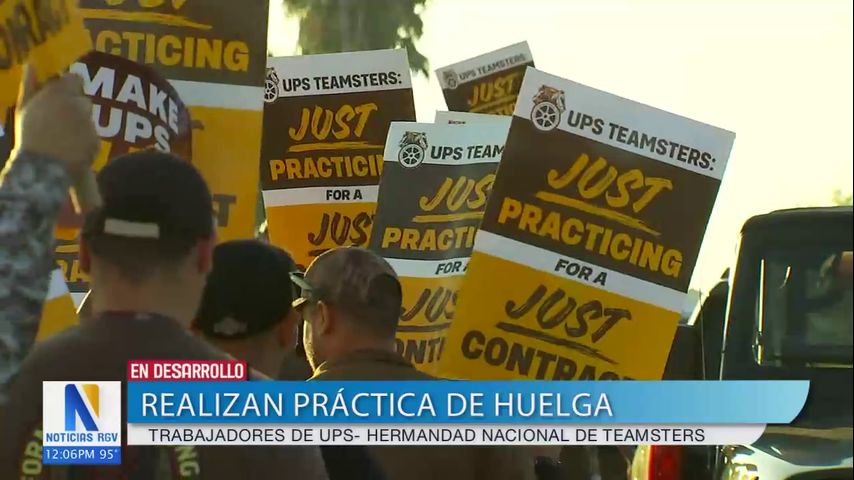 Joel Escobedo, miembro de Teamsters basado en San Antonio, llegó al valle el lunes, Escobedo dice que han estado practicando las huelgas en caso de que los negociadores de UPS no presenten una mejor oferta para sus trabajadores.