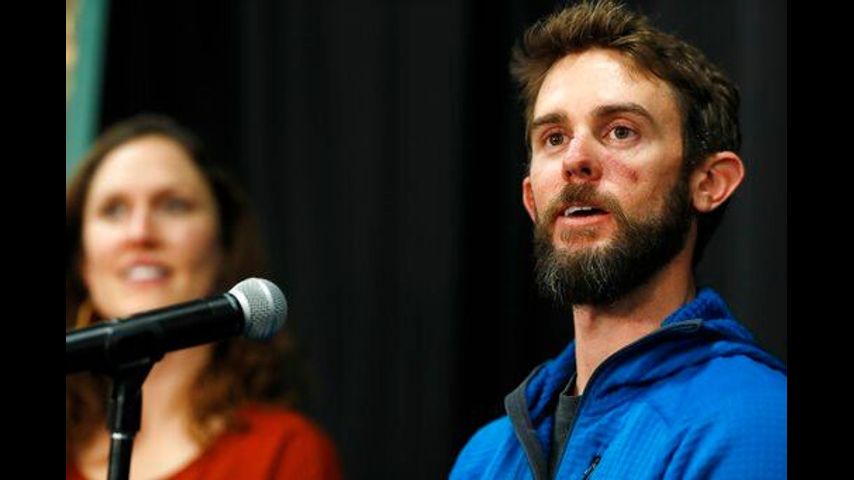 FORT COLLINS, Colo. (AP) - When a young mountain lion clamped its jaws onto Travis Kauffman's wrist and clawed at his face, he screamed a "barbarian yell," jammed his foot onto the animal's neck and held it there until the cat quit thrashing and died.