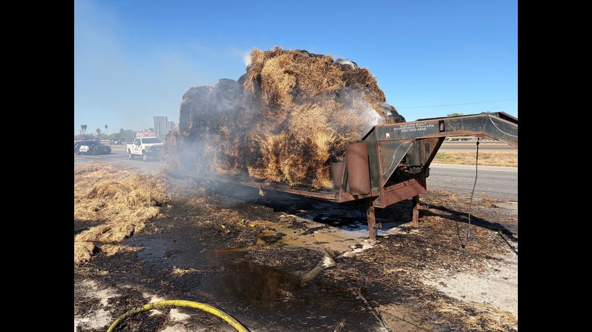 Trailer loaded with hay bales catches fire, causes road closure in Edinburg