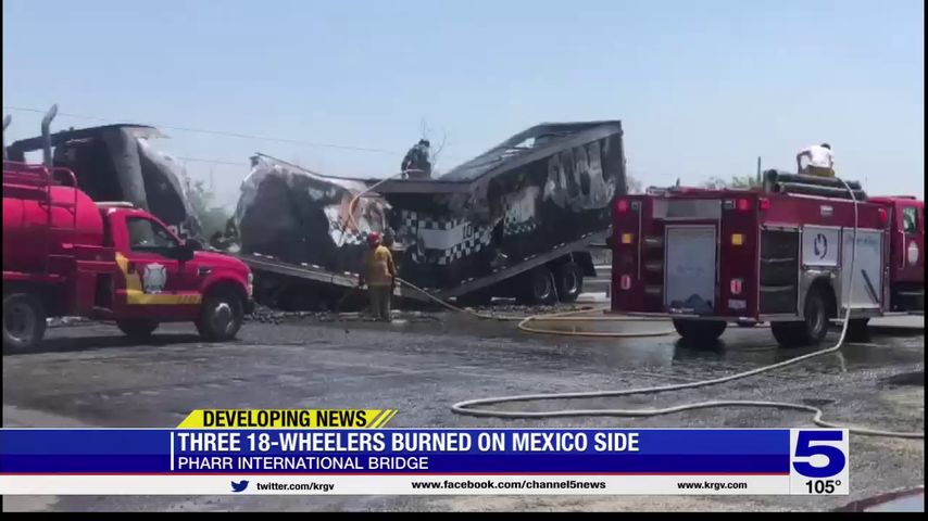 At least three 18-wheelers were burned on the Mexican side of the Pharr International Bridge on Wednesday.