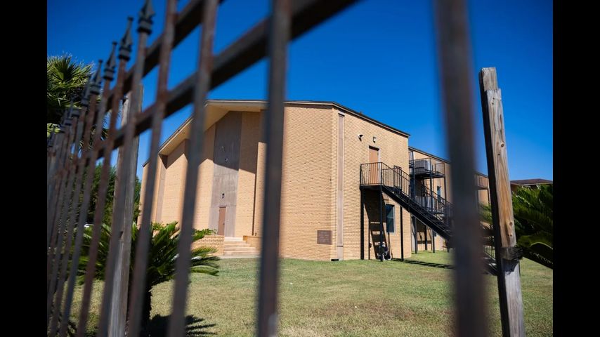 The main building, an old tan brick Baptist Church, occupies a city block in downtown San Benito, a quiet town of about 25,000. The church was converted to a migrant shelter in 2015 and was managed by two other contractors before Urban Strategies took it over in 2021.
