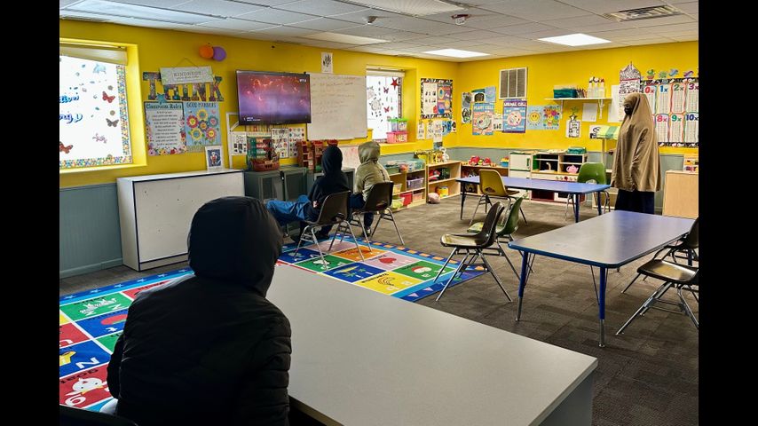 Children watch television at ABC Learning Center in Minneapolis, Minn., on Wednesday, Dec. 31, 2025. (AP Photo/Mark Vancleave)