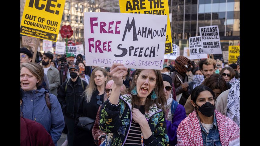 Trump on Monday took credit for the arrest by immigration agents of Mahmoud Khalil, a Columbia University graduate student and legal permanent resident who helped lead pro-Palestinian protests there. Khalil's lawyers say the government is targeting him for his activism and to "discriminate against particular viewpoints."