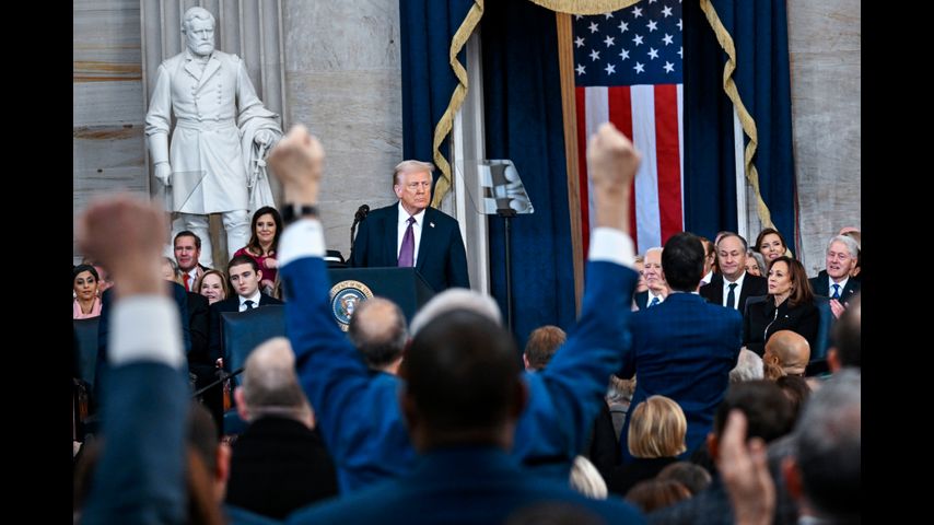 Breaking tradition, the Republican president delivered his remarks from inside the Capitol Rotunda due to the bitter cold outside. He spoke to several hundred elected officials and pro-Trump VIPs, tech titan Elon Musk among them.