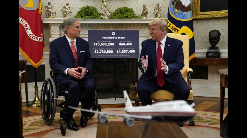WASHINGTON (AP) — President Donald Trump praised another Republican governor for rolling back state coronavirus restrictions despite failing to meet the administration’s recommended benchmarks as he welcomed Texas Gov. Greg Abbott to the White House on Thursday.
