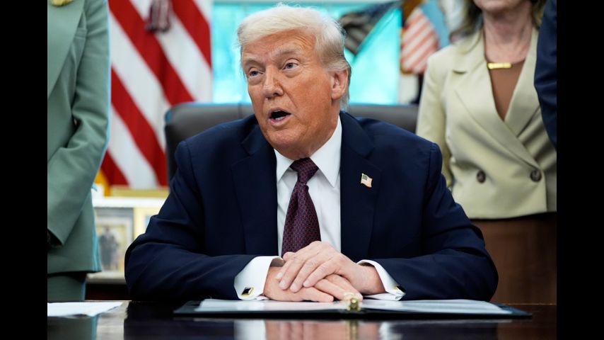 WASHINGTON (AP) — President Donald Trump said the U.S. military on Monday again targeted a boat allegedly carrying drugs from Venezuela, killing three aboard the vessel, and hinted that the military targeting of cartels could be further expanded.